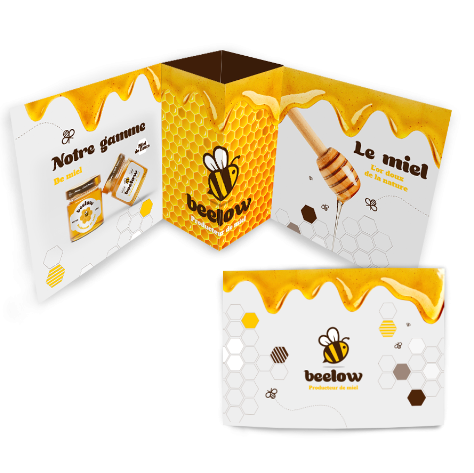 Le miel n'est plus seulement un produit du terroir : il est devenu un véritable symbole de naturalité et de consommation responsable. Les marques du secteur doivent affirmer une identité forte pour se démarquer. Le Grand Angle leur offre cette opportunité. Grâce à son format pop-up, ce support crée une véritable expérience visuelle autour du miel. À l'ouverture, la structure en volume révèle un univers graphique immersif : motifs alvéolés, coulées dorées, illustrations d'abeilles… Tout évoque l'authenticité du produit. Les volets latéraux deviennent des espaces narratifs pour présenter la gamme, expliquer les bienfaits ou raconter l'engagement de la marque.